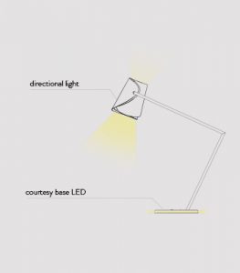 Illuminazione : shade led 6W – 24Vdc – 600 lumen – 2700°K / base led 1W – 2700°K