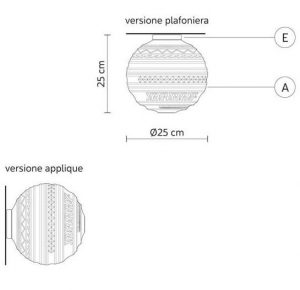 Descrizione : nuova linea in vetro composta da sospensioni , plafoniera da soffitto, lampada da parete , lampada da tavolo e lumetto. Diffusore in vetro bianco satinato con decorazione in rilievo e struttura in metallo laccato bianco opaco. Attacco lampadina 1xE27 / 1xE14 compatibile per lampadina a luce Led.