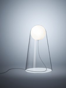 Un globo luminoso bianco in levitazione, sospeso nell’aria come una luna nel cielo di notte…. Un effetto luminoso e poetico per questa lampada che ricorda un frammento di luce pura che vola verso la libertà. Satellight è un oggetto semplice dalla comprensione immediata. Proveniente da un notevole lavoro sul vetro, Satellight si compone di un diffusore sferico bianco satinato realizzato in vetro soffiato inserita in una campana di vetro soffiato trasparetne. La campana sembra sostenere come per magia il corpo luminoso creando un effetto luce, come se fosse “sospesa nel nulla” anche quando la lampada è spenta. Una volta accesa, la sfera dalla finitura satinata diffonde una luce calda, delicata e non abbagliante. La luce riveste di preziosi riflessi il vetro brillante trasparente.