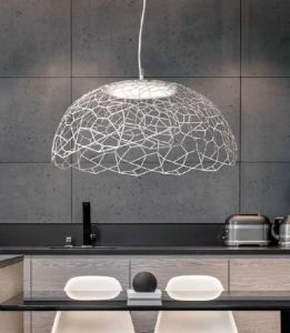 Luce eclettica, stravolgente, curiosa, una soluzione perfetta per arricchire il proprio arredamento di casa o di lavoro con originalità e innovazione. La sospensione Nassa dal design moderno e contemporane, ideale per illuminare la zona tavoro cucina o soggiorno, per un’illuminazione al di fuori da ogni clichè.