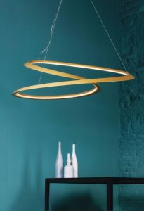 Nuova finitura GOLD che si accosta perfettamente con le nuove ed attuali tendenze per l’arredamento moderno-contemporaneo. Kepler sospensione, dal design distintivo per un nuovo concetto d’illuminazione, per un’ambientazione di casa o di lavoro.
