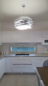 Descrizione : sospensione zona cucina mod. Essentia, tre fascie in metallo con finitura colore foglia argento, impreziosita da inserti in cristallo ottagonali. (disponibile mod. Essentia anche nei colori : foglia oro – foglia rame – bianco – nero) Sospensione dal diametro di 60cm. (varianti misure disponibili : diam. 100cm. – diam. 120cm.) con attacco 3xE27 compatibile per lampadina led. La sospensione Essentia dal design raffinato si accosta perfettamente con un arredamento contemporaneo, moderno elegante. Lampada da terra zona salotto mod. Bach XXL in materiale Opalflex nella finitura colore gold. (disponibile anche nella finitura white) Misure : H.184cm. diam. cm.31,5 (varianti misure disponibili : mod.L H.116cm. diam. cm.31,5 – mod.XL H.161cm. diam. cm.31,5) attacco 3xE27 compatibile per lampadina led. Lampada da terra Bach, con le sue eleganti ma rigorose forme si legano alle moderne curvature capaci di seguire perfettamente le linee di ogni ambiente architettonico. Bach è la lampada da terra adatta a regalare movimento e luminosità in diverse ambientazioni, rendono anche l’ambiente più accogliente, grazie ai suoi colori versatili e alle diverse altezze in cui è disponibile. Illuminazione di design e qualità esclusivamente Made in Italy…..