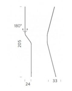 Descrizione : lampada da terra a led, versione in appoggio alla parete, struttura in acciaio curvato e corpo illuminante in alluminio verniciati nero opaco. Diffusore – corpo illuminante che ruota su sé stesso 180° per una luce indiretta. Sorgente luminosa linear led 8,5W – 2700K – 540 lumen con dimmerazione a pedale.