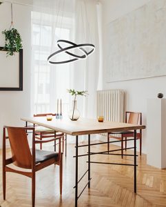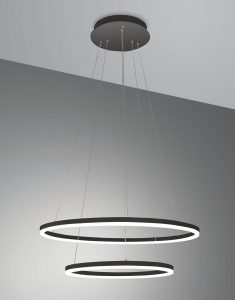 Illuminazione di stile moderno e minimale, finitura colore nero di tendenza che si accosta perfettamente con le nuove ed attuali soluzioni d’arredamento. Estetica e leggerezza per un design attuale e contemporaneo, per un’illuminazione originale e distintiva.