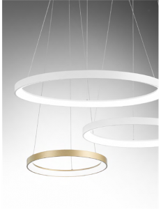 Tante idee luminose per arredare o rinnovare un ambiente di casa o di lavoro. Sospensioni con finitura gold a led integrato. (disponibili anche con finitura colore bianco e varianti misure/diametro) Design, qualità ed innovazione led… Made in Italy.