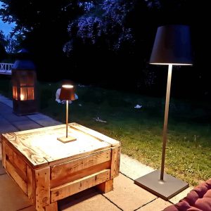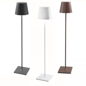 Poldina XXL Pro versione maxi è una lampada a batteria portatile e ricaricabile da terra e da tavolo. È dotata di : base di ricarica a contatto, touch dimmer, funzione di selezione della temperatura colore della luce tra 2700° e 3000° Kelvin (bianco dinamico) e di un kit di 3 aste che permette di regolare l’altezza della lampada da un minimo di 69cm. a un massimo di 150cm. Sorgente luminosa a led da 10W 510lm. Completa di batteria al litio (sostituibile), grado di protezione IP54 adatta per interni ed esterni. Disponibile nei seguenti colori : bianco – nero – ruggine. Ideale per illuminare un ambiente esterno o interno di casa o di lavoro. Design, qualità ed innovazione led… Made in Italy.