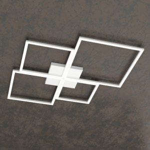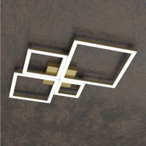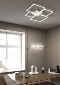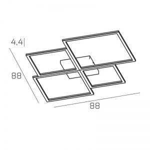Lampada da soffitto e parete, realizzata con diffusori in metacrilato e profili di alluminio, che uniti fra loro creano quattro quadrati di diverse dimensioni, producendo un’estetica allo stesso tempo sofisticata ma minimale. I punti di forza del prodotto sono l’importante resa luminosa, la sostituibilità del singolo modulo quadrato in caso di malfunzionamento e la possibilità di scelta della colorazione luce fra 3000K o 4000K che può essere scelta in fase di installazione, mediante degli switch, essendo la lampada dotata contemporaneamente di led con entrambe le colorazioni. Disponibile nei colori : bianco – nero – oro. Misure disponibili : 53cm. con led da 69W – 70cm. con led da 88W – 88cm. con led 119W. La serie viene completata da due modelli di applique e di una lampada da tavolo, aventi le medesime caratteristiche tecniche e di colori. Ideale per illuminare un’ambientazione moderna di casa, come living – cucina – salotto o per una camera da letto, avendo in abbinazione sia la lampada da parete che la lampada da comodino. Dal design moderno – minimal è perfetta, per la sua importante resa luminosa, anche per arredare abienti di lavoro, uffici e negozi. Design, qualità ed innovazione led Made in Italy a minor prezzo….