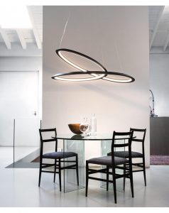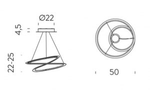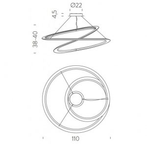 Sospensione disponibili in tre dimensioni : Kepler diam. 110cm. led 86W, Kepler Minor diam. 80cm. led 77W e Kepler Petite diam. 50cm. led 60W. Tutti i modelli sono dimmerabili con tonalità led da 2700K oppure da 3000K. Disponibile nelle versione “uplight” con fonte luminosa verso l’alto e nella versione “downlight” con fonte luminosa verso il basso. Nella versione Kepler Petite, disponile solo in downlight. Finiture colori, verniciate opache, bianco, nero e oro. La struttura è un estruso di alluminio verniciato, la cui linea continua è realizzata attraverso un processo di lavorazione tridimensionale ingegnerizzato da Nemo e disegnata sulla base del principio geometrico del nastro di Moebius.