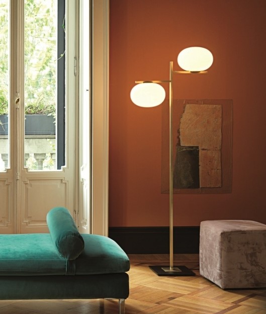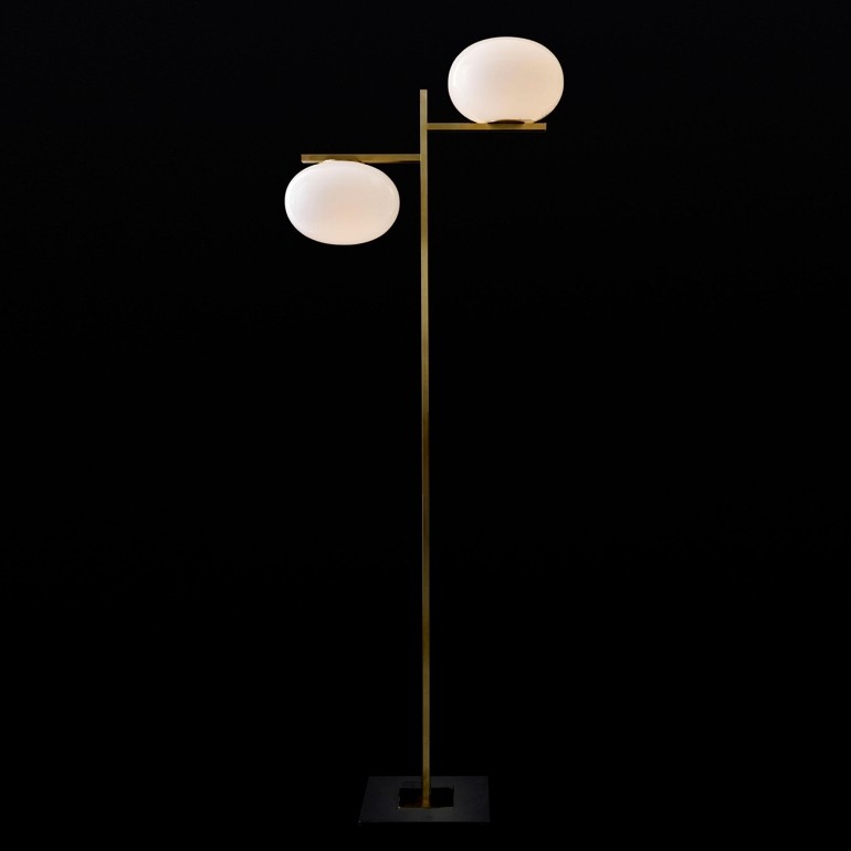 ALBA lampada da terra a luce diffusa in vetro soffiato opalino lucido, struttura in metallo a sezione rettangolare con finitura in ottone satinato, base in metallo colore antracite e particolare in ottone satinato. Disponiblie nella variante a una luce e a due luci, con attacco E27 compatibile per lampadine a led, completa di dimmer per variazione intensità luce. Il concept di Alba parte da un elemento molto semplice, ispirato nell’immaginario ad una goccia d’acqua, con forme morbide contrapposte a linee squadrate, insieme all’utilizzo della finitura ottone satinato danno vita ad una lampada di grande impatto visivo. Disponibile in due versioni da terra, entrambe appoggiate su un basamento colore antracite da cui si slancia un importante stelo a sezione rettangolare in finitura ottone satinato. Dall’estremità superiore si diramano, nella prima variante, un braccio sotto cui è sospesa la sfera, nella seconda, due braccia ad altezze diverse, una su ogni lato, che sostengono – una dall’alto, l’altra dal basso – le gocce luminose. Lampada da terra dal design moderno – contemporaneo, un punto luce che si accosta perfettamente con le attuali tendenze di arredamento, ideale per illuminare una zona lettura o un angolo salotto. Design, qualità, esclusivamente Made in Italy.