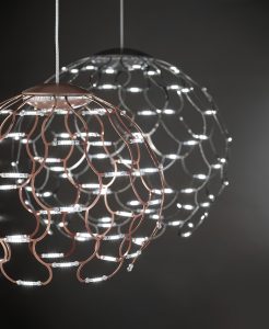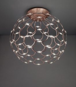 Nuovi colori per la collezione di sospensioni e plafoniere, disponibili ora nelle finiture colori ; nickel nero – cromo – rame – oro. Struttura caratterizzata da un sottile telaio metallico quasi invisibile che fà da conduttore di corrente ai moduli a led da 1w installati su tutta la struttura. Sospenione e plafoniera disponibili nelle varianti misure : diametro 40cm. – 60cm. – 80cm. Diffusione luce, diffusa ad alta luminosisà, led integrato da 49w nella misura da 40cm., led da 72w nella misura da 60cm., led da 99w nella misura da 80cm. Led da 2700k o da 3000k, disponibile nella versione on/off o dimmerabile. Optional le coperture sui circuiti led. Spento è un oggetto d’arredo originale, acceso dà un effetto brillante che lo rende unico. Design contemporaneo che si accosta perfettamente con le attuali tendenze d’arredamento. Ideale per illuminare ed arredare ogni ambiente di casa o di lavoro. Articolo prossimamente visibile presso il nostro punto vendita Rocco Luce. Design, qualità esclusivamente Made in Italy.