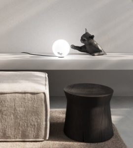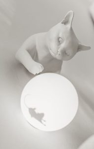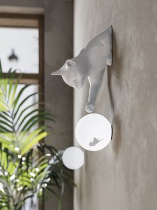 Anteprima novità…. Maoo una luce a prova di gatto !! Composta da due elementi, il corpo del gatto in ceramica bianca opaca o nero antracite e la sfera in vetro con sticker interno a forma di topino. Maoo si può collocare a parete oppure sulla scrivania, comodino o piano d’appoggio. Il gatto sembra balzare fuori dal muro o dal piano del tavolo, per giocare e stuzzicare con la zampa il topolino nella sfera luminosa. Descrizione : corpo lampada in alluminio anodizzato nero e diffusore a sfera in vetro acidato, gatto in ceramica bianca opaca o in ceramica antracite opaca. Misure : dimensioni gatto 30x15cm H. 20cm – diametro sfera vetro 12cm. Sorgente luminosa con lampadina Led 1xG9 max 5w (non inclusa). MAOO si aggiunge al Karman Zoo, la celebre collezione di lampade in ceramica ispirata al mondo animale, firmata da Matteo Ugolini. Design, qualità ed originalità Made in Italy.