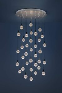 Novità mod. Syphaspot Chandelier Led Catellani & Smith. Syphaspot va ad arricchire la gamma degli Chandelier modulari da interno di Catellani & Smith. Descrizione : base tonda in acciaio satinato, diffusori a sfera in vetro trasparente, jack nickel, cavi neri. Illuminazione a Led ( led intercambiabile ) potenza per ogni elemento luce da 1,2w 24v – lumen 160 – 2700k CRI >90. I cavi sottili, uniti alla trasparenza delle sfere in vetro, danno allo chandelier un effetto leggero, illuminando con eleganza e discrezione e rendendolo adatto a molteplici contesti di arredamento. Disponibile nelle seguenti composizioni : 20 luci – 25 luci – 30 luci. Oltre a quelli proposti, lo chandelier è personalizzabile con basi di dimensioni e finiture diverse, con numero di elementi e altezze variabili su misura. Design, qualità e produzione artigianale, esclusivamnte Made in Italy by Catellani & Smith.