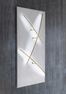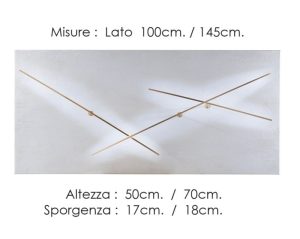 Albatros Led è una lampada da parete ad alto impatto scenografico. Realizzata con struttura scatolare rettangolare in metallo verniciata ad effetto pietra, sulla quale viene proiettata la luce prodotta da tre astine in metallo, di sezione quadrata, curvate e orientabili in senso rotatorio. Finiture colori disponibili : bianco etrusco con luci in ottone satinato – ardesia con luci in ottone satinato. Due varianti misure : versione piccola lato 100cm. H. 50cm. sporgenza 17cm. con Led da 30w 1510lm 3000k – versione grande lato 145cm. H. 70cm. sporgenza 18cm. con Led da 45w 2640lm 3000k, alimentazione incluso, dimmerabile Triac. Grazie al suo design minimal e alla sua luce diffusa, la lampada da parete Albatros è in grado di valorizzare ogni ambientazione, di casa o di lavoro, creando un’atmosfera accogliente ed elegante. Una lampada da parete, che grazie alle sue generose dimensioni permette di arredare pareti importanti, con l’effetto di una vera scultura luminosa. Design, qualita esclusivamente Made in Italy. ( rivenditori autorizzati del brand Icone )