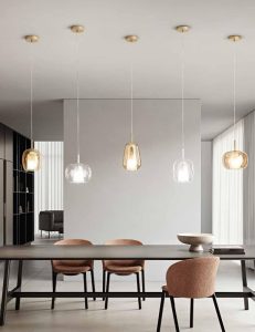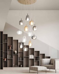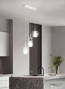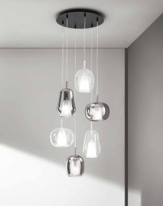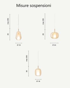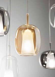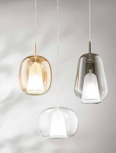 Nuove forme, per la nuova collezione di sospensioni in vetro soffiato, disponibili nella versione singola o a composizione di più luci, con rosone tondo o rettangolare. Tre forme di vetro, caratterizzate da un doppio strato ; interno in vetro satinato, esterno in vetro colorato. Tre colori vetro : trasparente – ambra – fumè. Attacco lampadina E14 led, cavo trasparente regolabile. Dal design contemporaneo, le nuove sospensioni, consentono di creare soluzioni personalizzate. Ideali per arredare ed illuminare ogni ambientazione di casa o di lavoro. Design, qualità a minor prezzo, Made in Italy.