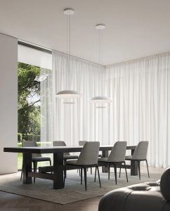 Novità Euroluce 2025, nuova collezione Blanco, sospensione e lampada da soffittto in due varianti musure. Led integrato da 23,8w 2893lm. 3000k sia nella versione a sospensione che a plafoniera, nel diametro da 60cm. e nel diametro da 92cm. Un’interpretazione elegante e contemporanea della classica sospensione e plafoniera, Blanco in alluminio bianco opaco è caratterizzata da forme fluide e leggere che ricordano dischi sospesi nell’aria. Perfetta per chi cerca un’illuminazione discreta ma d’effetto, questa lampada si adatta a una vasta gamma di ambienti, valorizzando l’architettura con un design essenziale e raffinato. Design, qualità esclusivamente Made in Italy brand Karman.