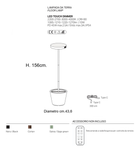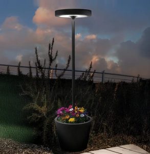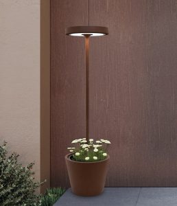 diffusore in policarbonato. Adatta all’uso esterno con protezzione IP54, dotata di sensore crepuscolare e di movimento. Durata batteria : luce piena 8h. – micro 32,5h. – tempo di ricarica 3h. Pacco batteria al litio ricaricabile e sostituibile, cavo USC-c lunghezza 3 metri incluso, alimentatore e spina non inclusa. Controllabile da remoto mediante l’appicazione Zafferano Lighting. Firmware del dispositivo aggiornabile da remoto. La lampada Poldina Reverso Solar L Wi-Fi Led per poter funzionare, deve essere collegata a una rete Wi-Fi con frequenza 2,4 GHz. Disponibile in tre varianti colori : nero – corten – sabbia. Disponibile accessorio telecomando a radiofrequenza per controllo da remoto. Il diffusore illumina a 360° verso il basso, la base della lampada è un contenitore, dove è possibile abbellirla con dei fiori, un’idea originale per illuminare una zona esterna, come un’entrata di casa o per una terrazza, ideale sia per ambientazioni domestiche che di lavoro. Design, qualità Made in Italy brand AiLati-Zafferano.