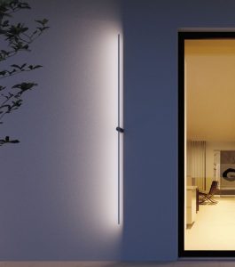 Feeling Led wall è la nuovissima lampada da parete per l’illuminazione da esterno casa. Lampada decorativa da esterni, per illuminare terrazze e portici, in modo accogliente e confortevole. La lampada è caratterizzata da un sottile stelo in alluminio, in grado di compiere due diverse rotazioni : la prima, attorno al proprio asse, consente di direzionare il fascio luminoso creando effetti di luce diretta, indiretta o laterale ; la seconda, attorno al perno di fissaggio, permette di ruotare lo stelo portandolo da una posizione verticale a una diagonale o orizzontale. Disponibile in due varianti misure : da 1 metro con led integrato da 9w 2700/3000/4000k CRI90 – da 2 metri con led integrato da 14,5w 2700/3000/4000k CRI90, alimentazione 24vdc, grado di protezione IP54. Feeling è disponibile nelle finiture colore, tutta nera o bianca con perno/base nero (disponibile in altre finiture su richiesta). Effetti di luce e fascio orientabile, per creare un’illuminazione innovativa e di design, per le zone esterne. Design, qualità esclusivamente Made in Italy brand Simes.