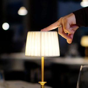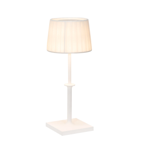 La nuova lampada portatile Poldina Classic, reinterpreta in chiave contemporanea la tradizionale lampada da tavolo con paralume, unendo design e funzionalità. È una lampada da tavolo a Led da 3,5w ricaricabile, pensata per ambienti interni, composta da una struttura in alluminio verniciato, un paralume in tessuto plissettato e un modulo luce in policarbonato opalino, che diffonde una luce soffusa e accogliente. Il modulo luce è removibile : si stacca facilmente dalla lampada e si ricarica in modo pratico e sicuro sulla base di ricarica a contatto inclusa. Un vantaggio che facilita l’utilizzo quotidiano e ne aumenta la versatilità. Il modulo è dotato di un comando touch che consente di accendere e spegnere la lampada, regolare l’intensità luminosa e scegliere la temperatura di colore della luce 2200K, 2700K, 3000K. L’alimentatore a spina è acquistabile separatamente. Con un’autonomia di 7–8 ore alla massima potenza e una ricarica completa in circa 5 ore, Poldina Classic è disponibile nelle finiture bianco, oro opaco e bronzo. È la soluzione perfetta per chi desidera un’illuminazione elegante, decorativa e senza fili, ideale per ogni ambientazione di casa o di lavoro. Design, qualità Made in Italy brand AiLati-Zafferano.