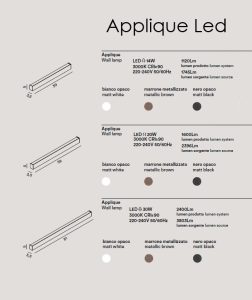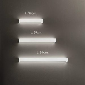 Nuova lampada da parete a led integrato, con struttura in metallo verniciato disponibile nelle finiture colori : bianco opaco – nero opaco – marrone metallizzato. Diffusori di chiusura applique soppra e sotto in acrilico satinato. Disponibile in tre varianti misure : cm.39 con led da 14w 3000k – cm.59 con led da 20w 3000k – cm.81 con led da 30w 3000k. Diffusione luce a biemissione (verso l’alto e verso il basso) garantisce un’illuminazione omogenea e piacevole. Applique dalla linea essenziale, elegante e versatile, progettata per arricchire ogni ambiente di casa o di lavoro, si accosta perfettamente ad ogni stile d’arredamento, dal moderno al contemporaneo ad uno stile più classico. Nella versione più lunga, non sarà semplicemente una lampada da illuminazione, ma diventa un complemento d’arredo importante che saprà valorizzare ogni ambientazione. Design, qualità a minor prezzo…. Made in Italy.