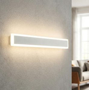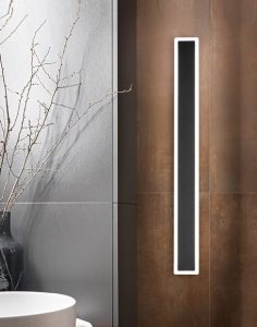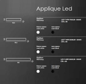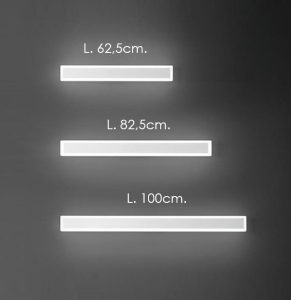 Nuova lampada da parete a led integrato, struttura in metello verniciato in finitura bianco opaco o nero opaco. Diffusore in acrilico bianco satinato che percorre il perimetro esterno dell’intera struttura rettangolare. Disponibile in tre varianti misure : cm.62,5 con led da 17w 1700lm. 3000k – cm.82,5 con led da 19w 2008lm. 3000k – cm.100 con led da 22w 2600lm. 3000k. Lampada da parete che può essere installata sia in orizzontale che in verticale, ideale per ambienti come la zona bagno avendo il grado di protezione IP54 che la rende ben protetta da spruzzi d’acqua e umidità. Applique dal design moderno ed essenziale, versatile e senza tempo, adatta per l’illuminazione di ogni ambientazioni di casa o di lavoro, si accosta perfettamente con arredamenti moderni o contemporanei. Design, qualità a minor prezzo…. Made in Italy.
