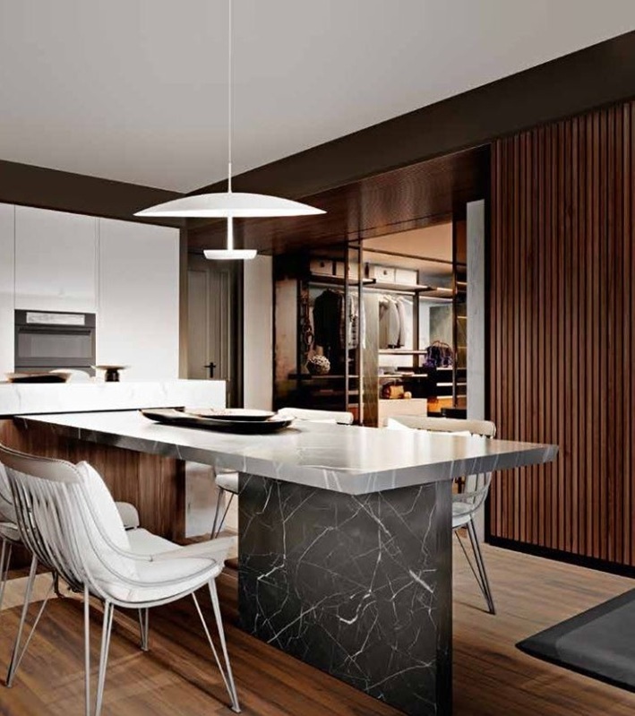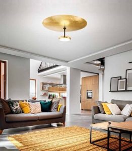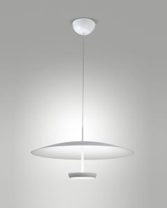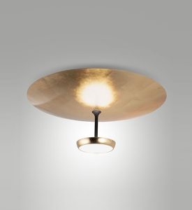 Nuova collezzione di lampade a sospensione e da soffitto-plafoniera a Led integrato. Struttura in metallo verniciato, disponibile nella versione foglia oro/nera o tutta bianca. Diffusore luce in metacrilato bianco satinato. Sospensione e plafoniera a led integrato a doppia emissione luce, diretta e indiretta (verso il basso e verso l’alto) con led da 40w 3200lm. 3000k, dimmerabile a tre step. Cavi di sostegno sospensione regolabili per altezza. Unica misura, sia per la sospensione che per la lampada da soffitto, del diametro di 60cm. Sospensione e plafoniera di attuale tendenza, ideale per illuminare ed arredare ogni ambientazione di casa o di lavoro. Dal design essenziale e contemporaneo, si accosta perfettamente con le attuali tendenze d’arredamento. Design, qualita a minor prezzo…. Made in Italy.