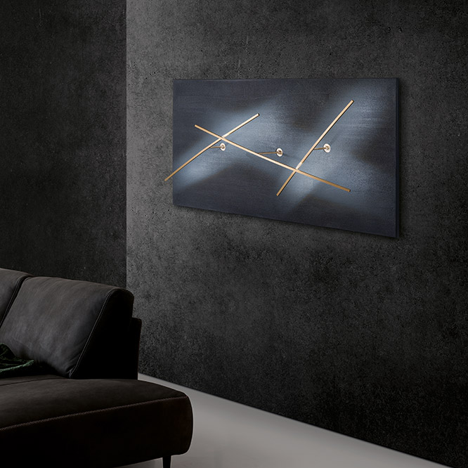 Albatros Led è una lampada da parete ad alto impatto scenografico. Realizzata con struttura scatolare rettangolare in metallo verniciata ad effetto pietra, sulla quale viene proiettata la luce prodotta da tre astine in metallo, di sezione quadrata, curvate e Read more
