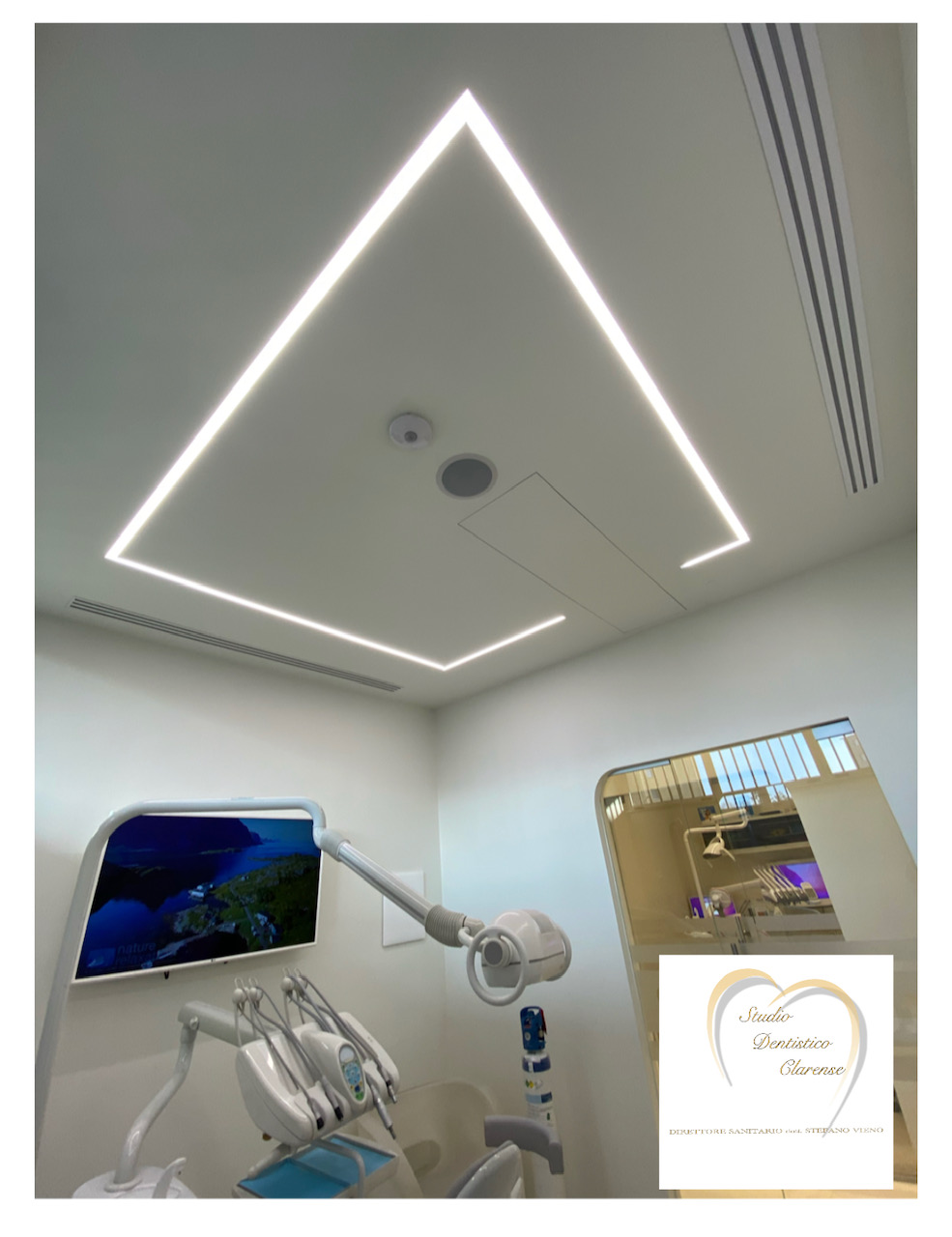 Ambientazione Studio Dentistico : zona sala attesa, illuminazione con strip led per veletta in cartongesso e faretti a scomparsa/incasso in gesso con attacco GU10 lampadina led. Zona sala dentistica, illuminazione con profili led da incasso, installabili singolarmente o in Read more