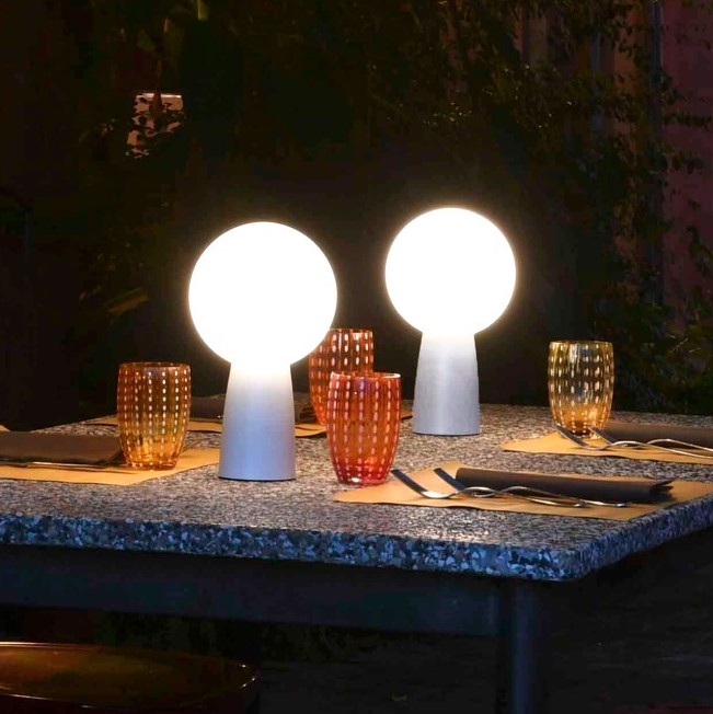 Descrizione : nuova lampada da tavolo a batteria, portatile e ricaricabile, con diffusore in vetro opale satinato, soffiato a bocca. Il diffusore sferico, che emette una luce diffusa, appoggia su una struttura in Read more