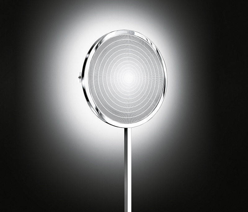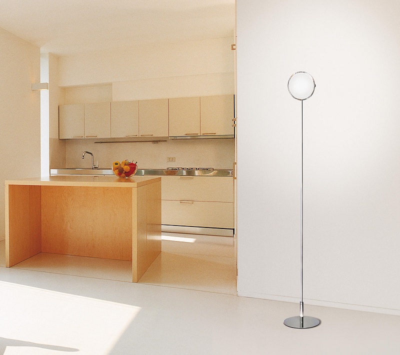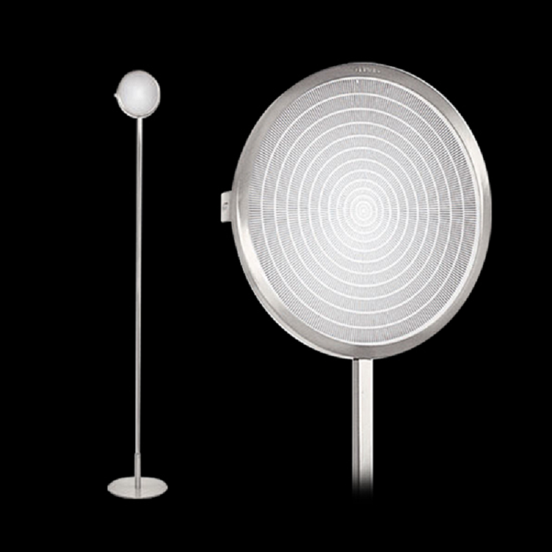 Lampada da terra caratterizzate da un disco retroilluminato che distribuisce la luce prevalentemente sulla parete generando luce morbida e d’atmosfera. Struttura stelo in acciaio inox finitura cromo lucido, base in metallo nero, disco diffusore/riflettore in vetro smaltato, orientabile in due posizioni verticale o inclinato, genera luce diffusa e riflessa. Sorgente luminosa att. 1xR7S 160W alogena (inclusa) intensità luminosa dimmerabile. Design essenziale per illuminare un arredamento moderno-contemporaneo. Design, qualità Made in Italy. ( ditta Cini & Nils )