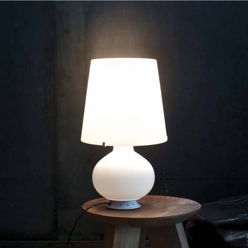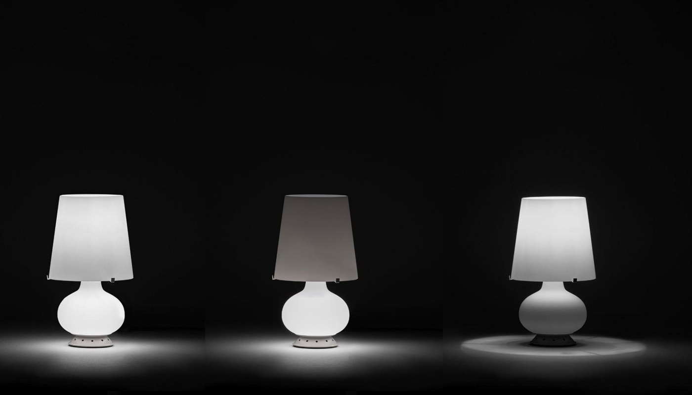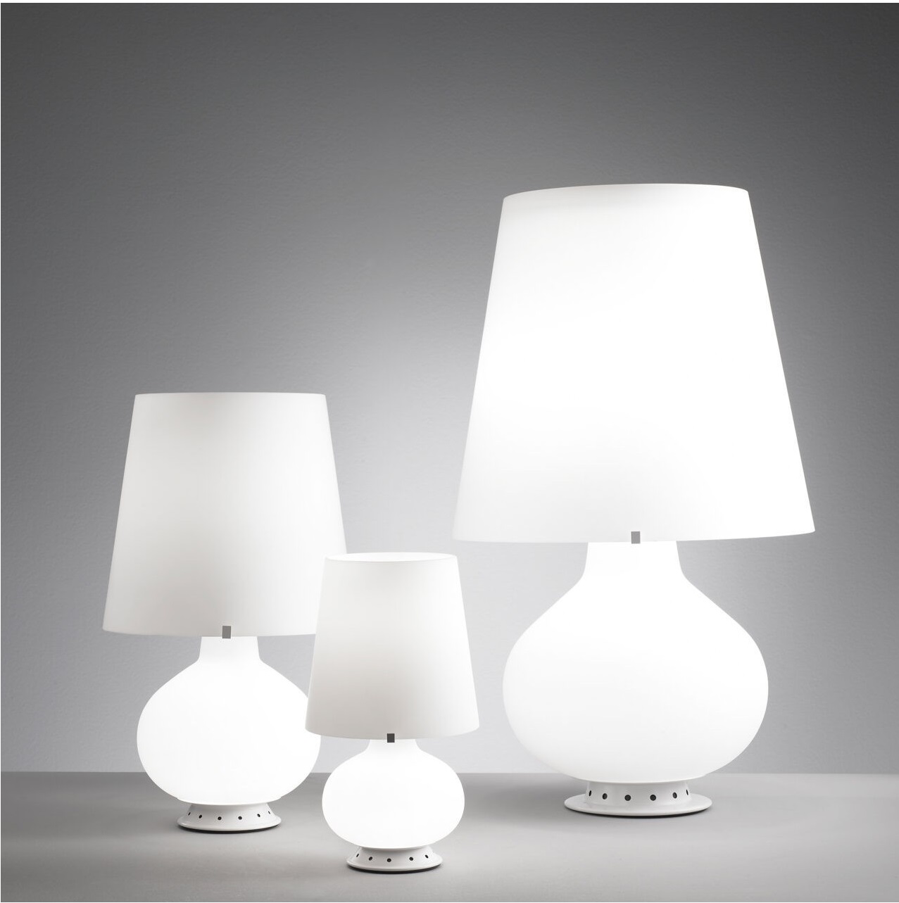 Disegnata nel 1954 dal celebre Maestro vetraio e decoratore francese Max Ingrand, la lampada fu originariamente denominata 1853 e successivamente Fontana, proprio in omaggio all’azienda della quale il Maestro fu per un decennio Direttore Artistico. Ancora oggi best seller ed icona intramontabile, Fontana rappresenta l’abat-jour per eccellenza. La particolarità di Fontana è l’accensione multipla: sia la base che il paralume contengono una o più fonti luminose. Una lampada preziosissima in vetro soffiato satinato bianco. Disponibile nella misura media, attacco 1xE27 + 2xE14 (escluse). Doppio interruttore on-off sul cavo. Design, qualità esclusivamente Made in Italy. ( ditta Fontana Arte )