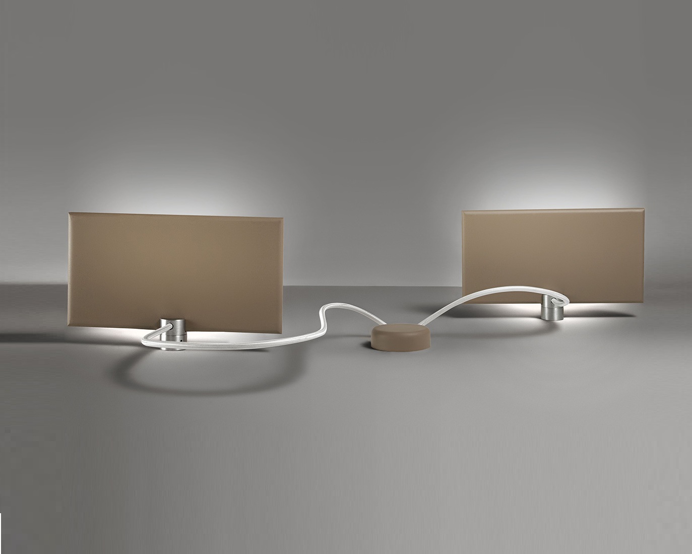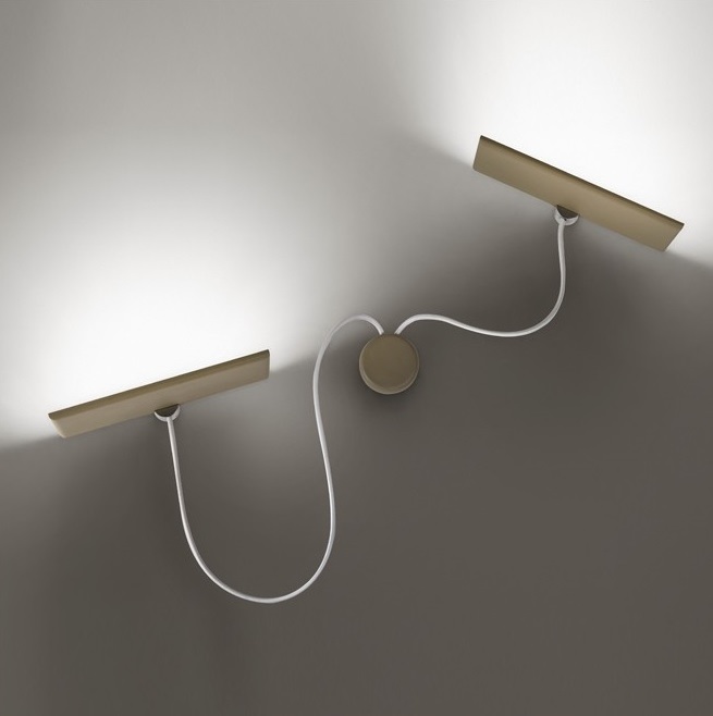 Lampada da parete GiuUp 40.2 a led integrato, realizzata in alluminio tornito. Diffusore lampada orientabile a luce indiretta e confortevole. Disponibile nella finitura tortora con cavetti bianchi. Led integrato ad alta resa ed efficienza luminosa 2x20W 3000K 3800lm. 220V che non necessita di alimentatore. La base/attacco per l’alimentazione della lampada, viene posizionata dove escono i fili di corrente, i due diffusori luce possono essere installati in ogni posizione che si desidera. Collezione dal design retrò, rivisitata in stile più contemporaneo, ideale per ambientazioni di cui si necessita un’illuminazione più importante. Design, qualità esclusivamente Made in Italy. ( ditta Icone )