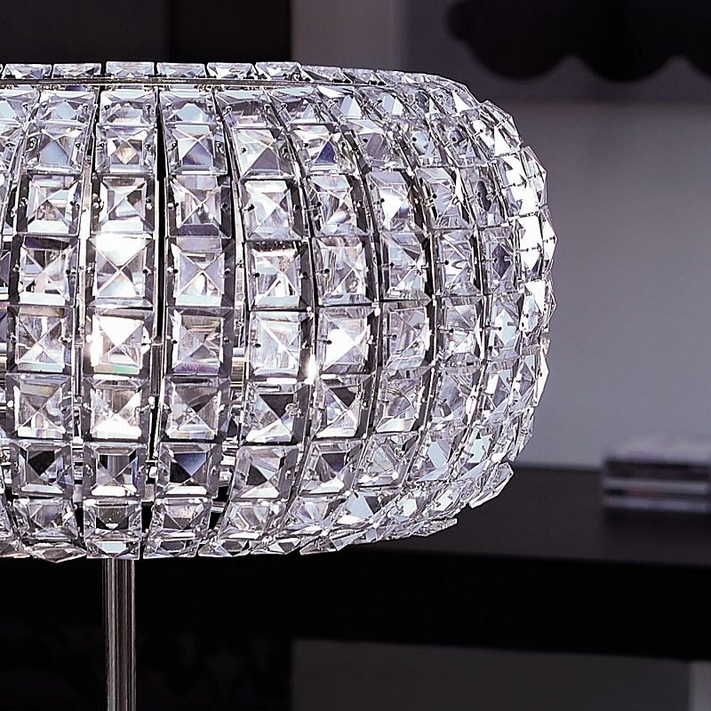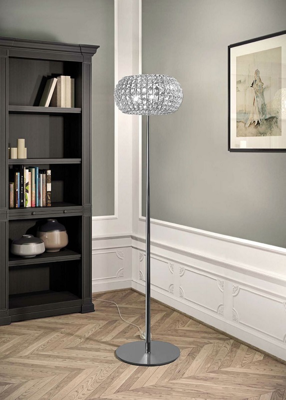 Lampada da terra Nashira, elegante e raffinata affascina per i mille colori che sprigiona il diffusore composto da cistalli made in Italy brillantemente levigati che si uniscono glamour della struttura. Lampada da terra con diffusore formato da cristalli incastonati ad una struttura in metallo con finitura nichel lucido. Corpo lampada in metallo con finitura nichel lucido. Sorgente luminosa attacco 4xG9 led (lampadine escluse) Un tocco di lusso che aggiungerà eleganza ad ogni ambiente di casa. Design, qualità esclusivamente Made in Italy. ( ditta Marchetti )