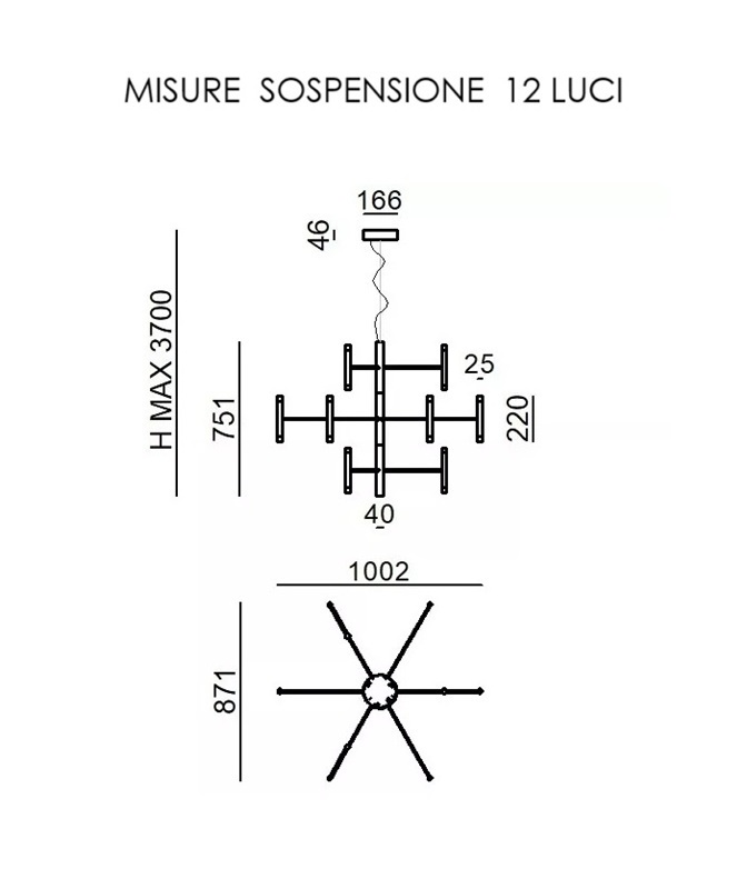 Misure : diametro 102cm. H. 75 + cavo cm.295