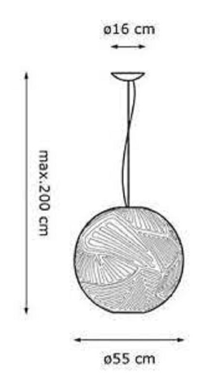 Misure : diametro 55cm. H. max 200cm. – regolabile rosone diametro 16cm.