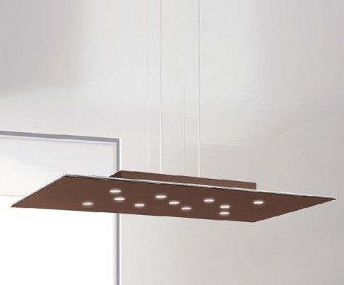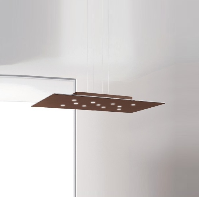 Sospensione a led con diffusione luce a biemissione ( luce verso l’alto e luce verso il basso ). Linee essenziali per la sospensione di forma geometrica rettangolare con misure lato 92x47cm. H. max con cavo 120cm. Illuminazione a Led integrato da 50W+17W 3850lm + 1350lm. 3000K 220V non necessita di alimentatore. Diffusione luce diretta ed indiretta e diffusa. Finitura colore corten opaco. Design minimal ma esclusivo e raffinato sia dal punto di vista estetico che cromatico. Ideale per ogni tipo di ambientazione in stile moderno o classico contemporaneo. Design, qualità esclusivamente Made in Italy. ( ditta Icone )