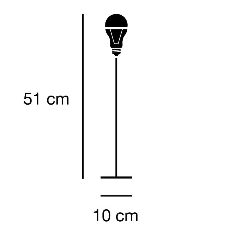 Misure : lampadina Ø 7cm. x H. 14cm. – base 10×10cm. – H. piedistallo 40cm. – H. totale 51cm.